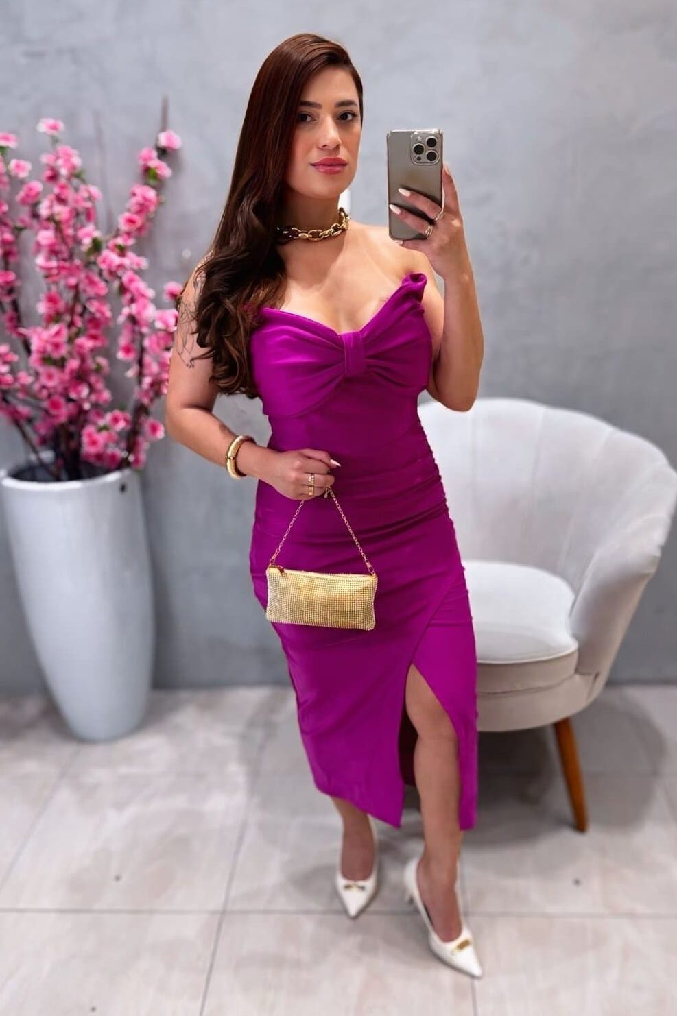 Vestido Mídi Festa Fúcsia